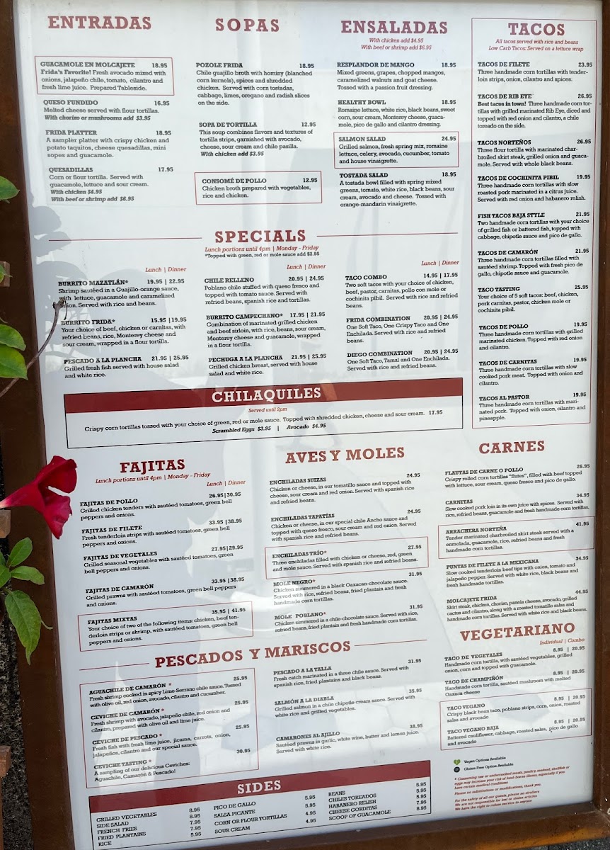 Frida Mexican Cuisine Menu